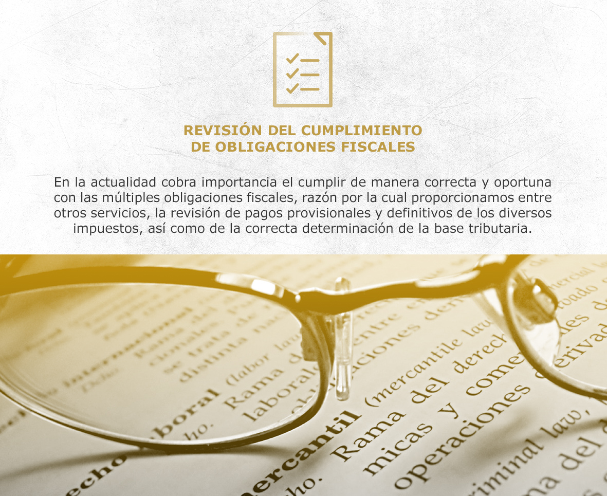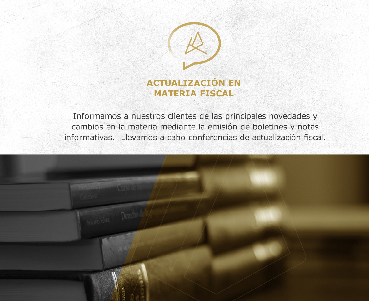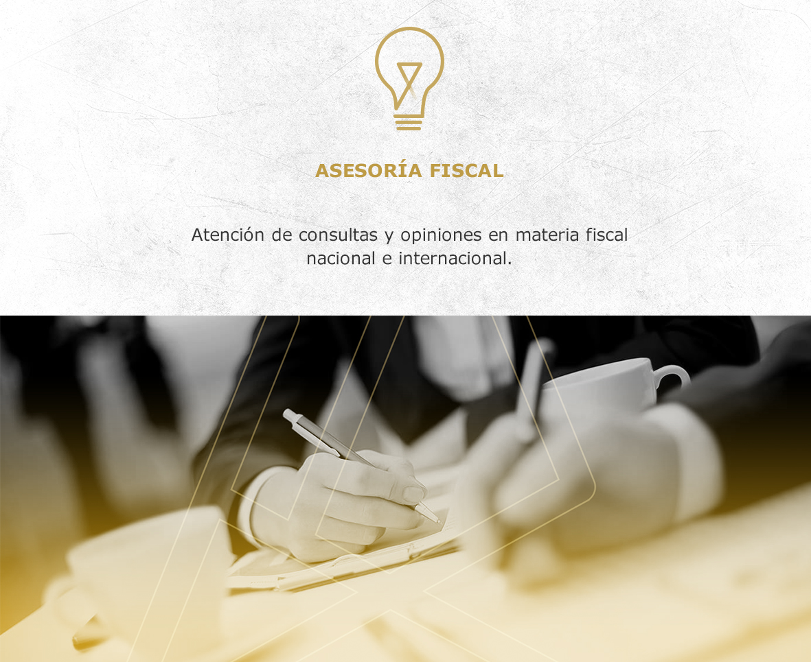 Firma dedicada a la prestación de servicios fiscales con la experiencia para resolver los retos que demanda el mercado, cuya principal premisa es la eficacia en sus servicios, acompañando a sus clientes en sus procesos con el objetivo de brindarles la seguridad y tranquilidad para consolidar sus proyectos.
